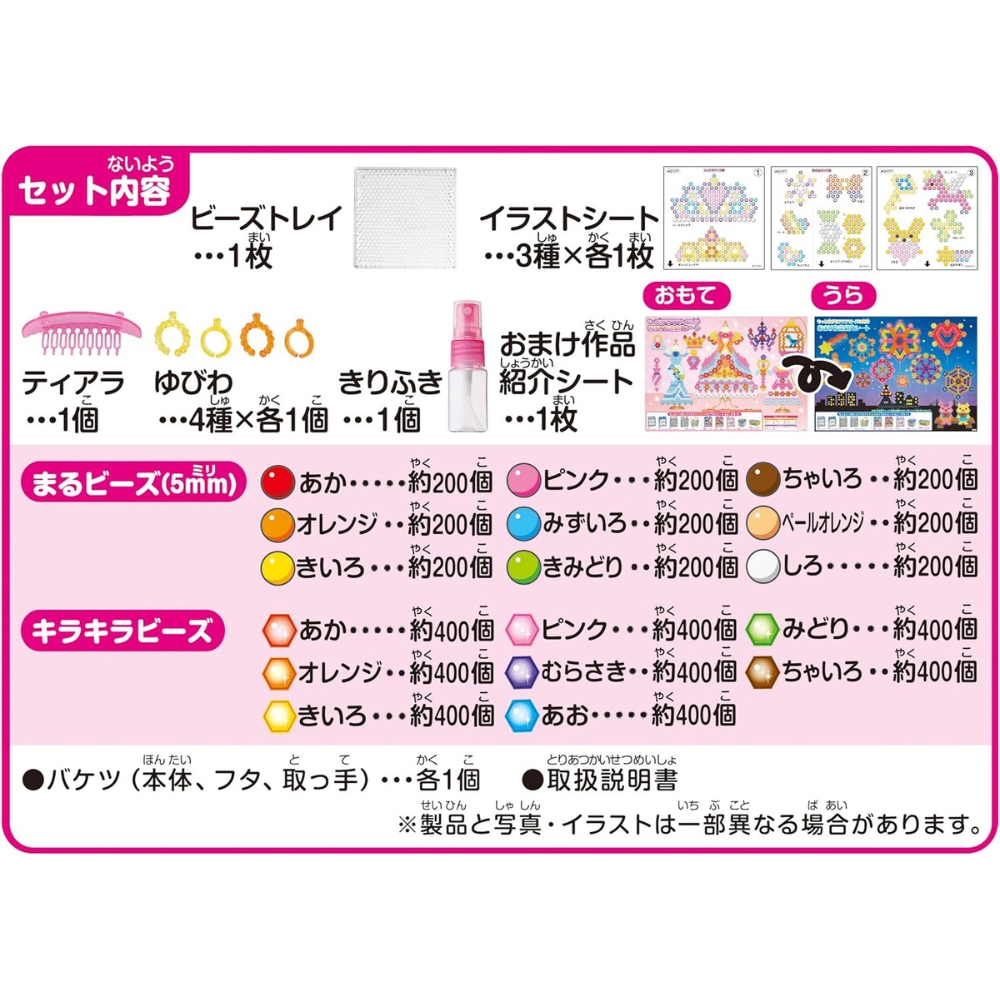 ・バケツ、ビーズトレイ、イラストシート3枚(3種)、ティアラ、ゆびわ4種x1、