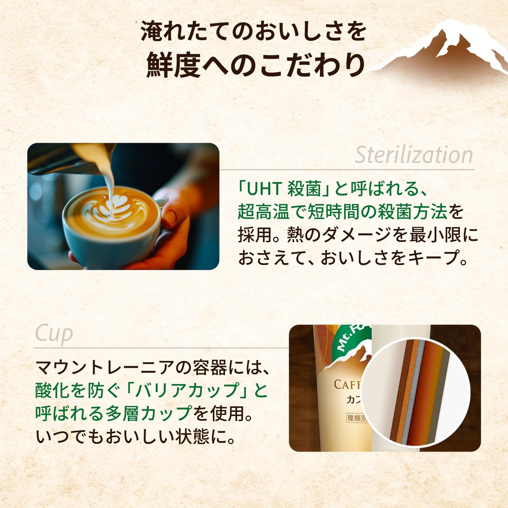 【マウントレーニア】こだわりのエスプレッソの程よい苦みとミルクのやさしさの、絶妙なハーモニー。それぞれの好みや気分に応える、多彩なフレーバー。