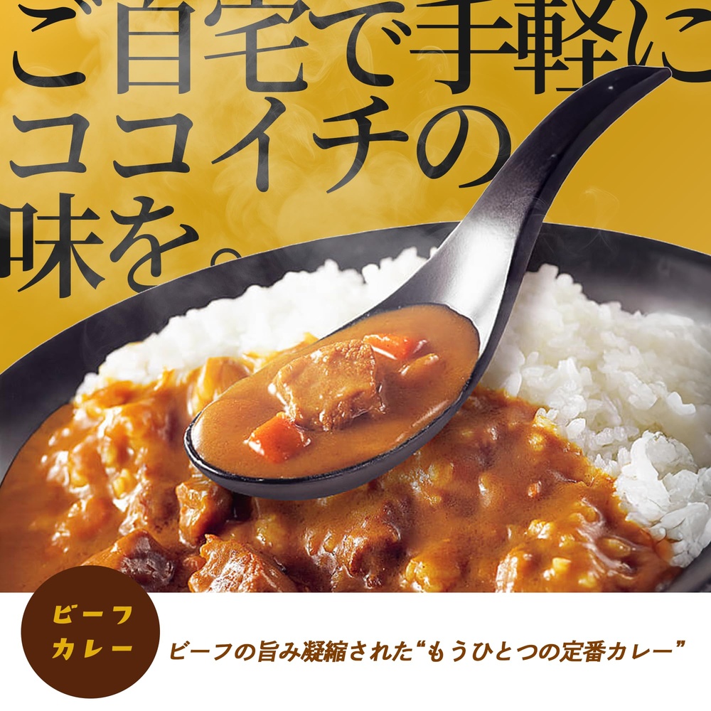 【お店の味をご家庭で】 ココイチ自慢のオリジナルレトルト「ビーフカレー」。レトルトで手軽に楽しめる一品。ビーフの旨味を凝縮させたコクと深い味わいが自慢の逸品です。
