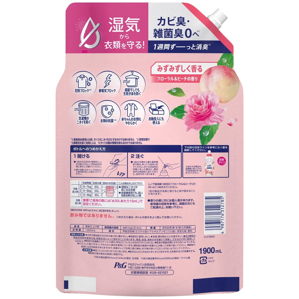 レノア 超消臭1WEEK 柔軟剤 みずみずしく香るフローラル&ピーチの香り 詰め替え 1900mL