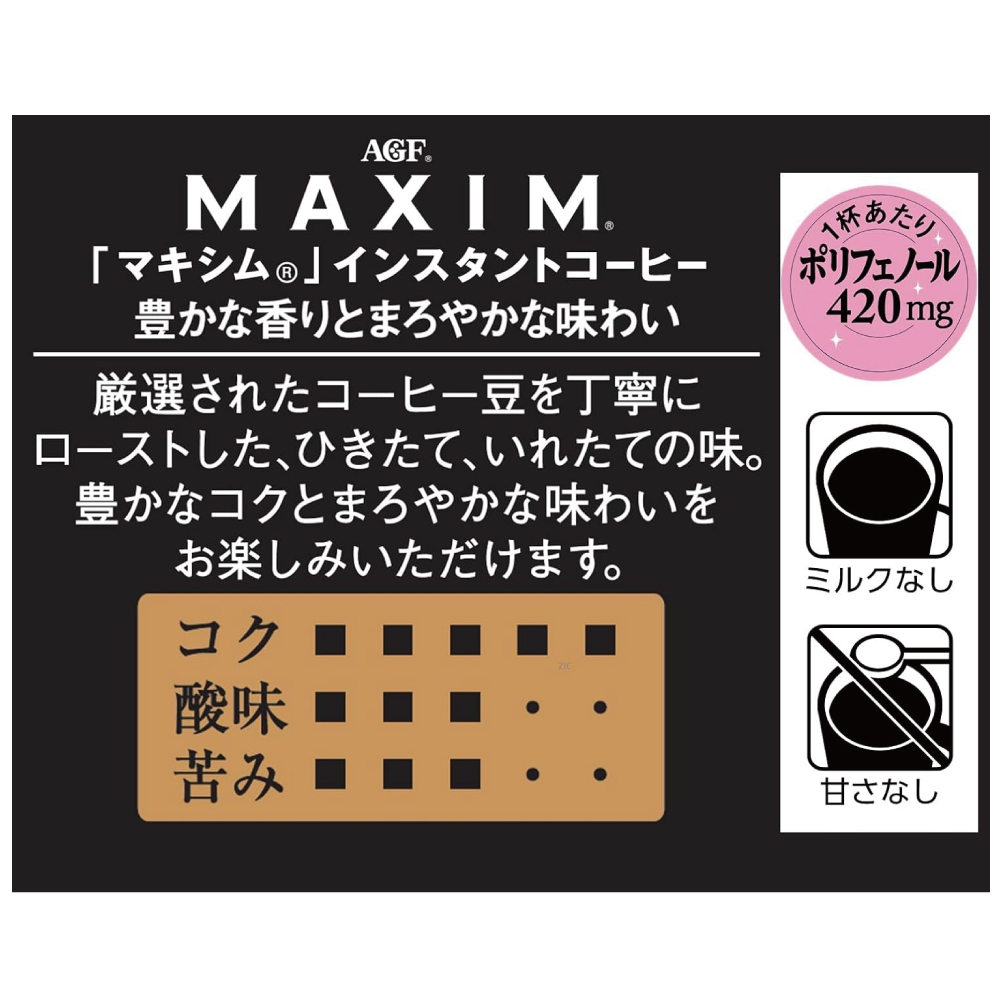 AGF(エージーエフ) 「マキシム」瓶80gは、豊かな香りとまろやかな味わいが楽しめるフリーズドライコーヒーです。お試ししやすい中容量、瓶入りタイプ。