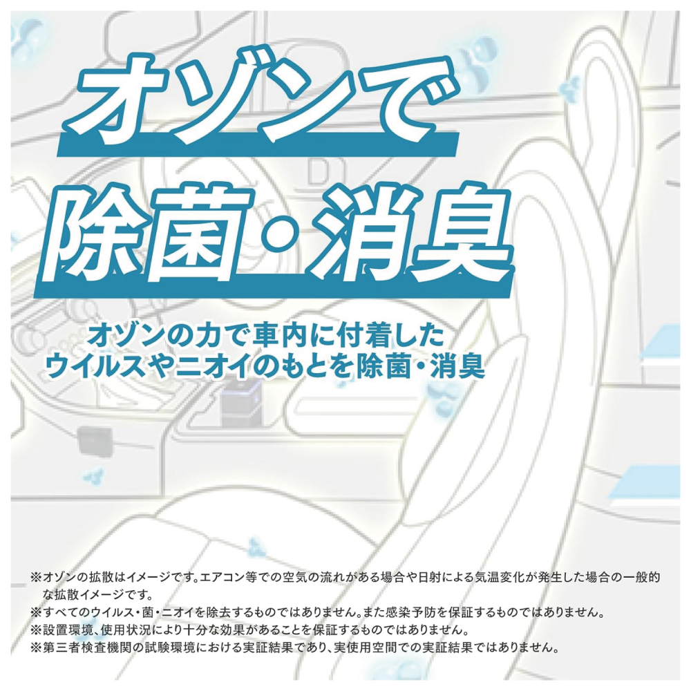 ・付属バッテリーユニットで、駐車中も除菌・消臭!また持ち運びや載せ替えも簡単なため、レンタカーやカーシェアなどでも使用することもできます!