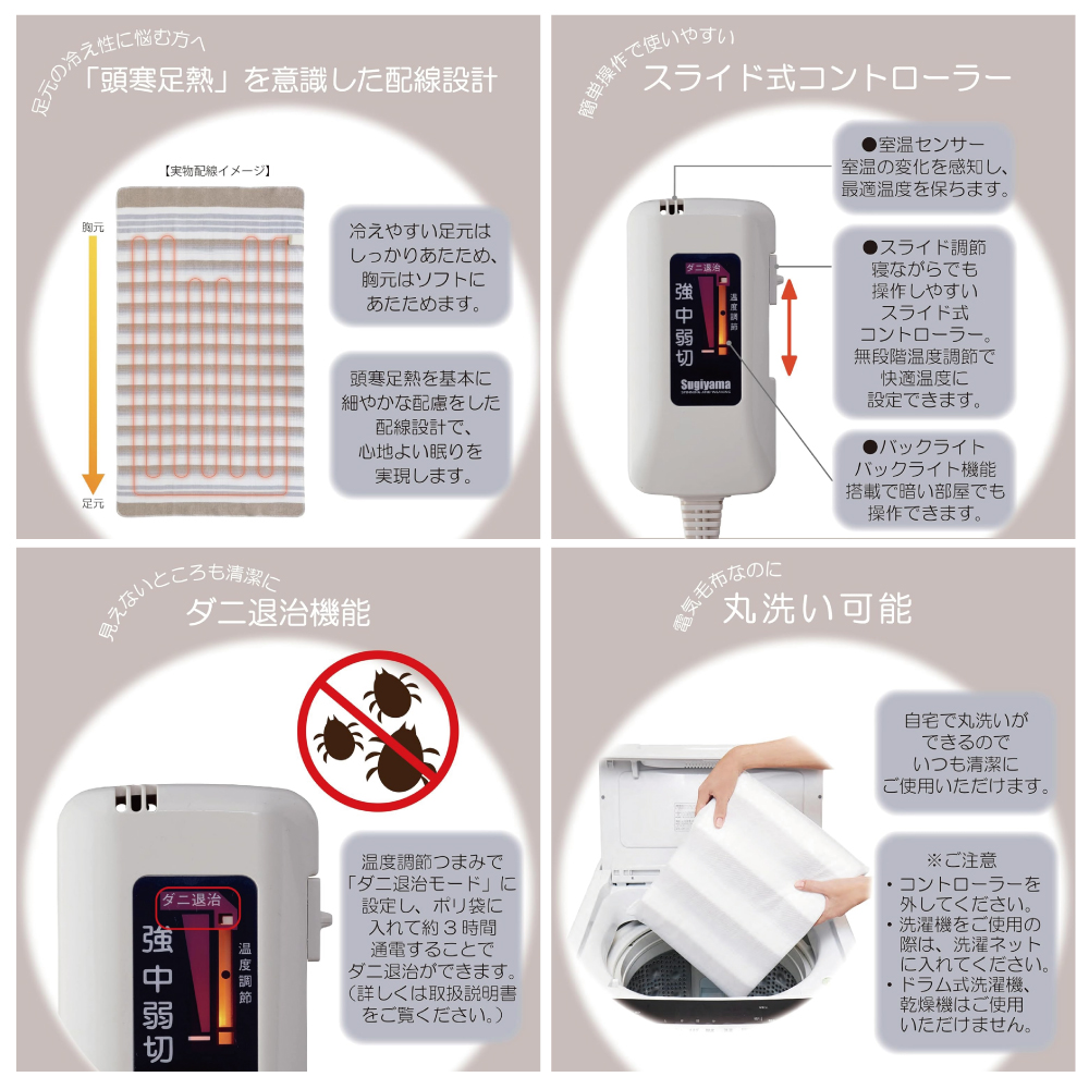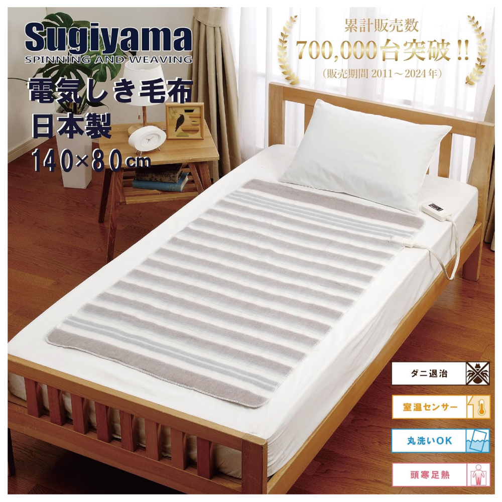 Sugiyama 電気敷き毛布 日本製 洗える ダニ退治 140×80cm NA-023S